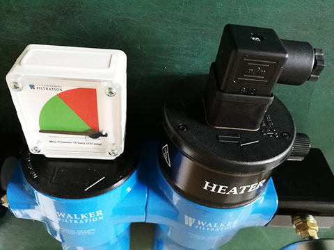 WALKER压缩空气精密过滤器压差表的传感器是安装在压缩空气精密过滤器入口和出口之间的,这样可以更好地监控压缩空气精密过滤器的工作情况,当压缩空气精密过滤器内的污染物增多,气流通过压缩空气精密过滤器的压差也会增大,气流通过过滤器滤芯受阻,当压差增大到一定程度,WALKER压缩空气精密过滤器压差表的指针就会指向表盘的红区或是表盘的大刻度区域,提示用户是更换过滤器滤芯的时候了。一般来讲,WALKER压缩空气精密过滤器的滤芯更换周期是12个月或者使用8000小时,以先到为准,而WALKER活性炭滤芯的更换周期是6个月。